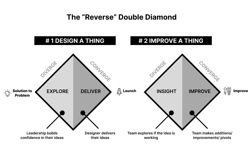 The so-called “Double Diamond” is a great way of visualizing an ideal design process, but I experienced that it’s not the way that most companies deliver new projects or services.